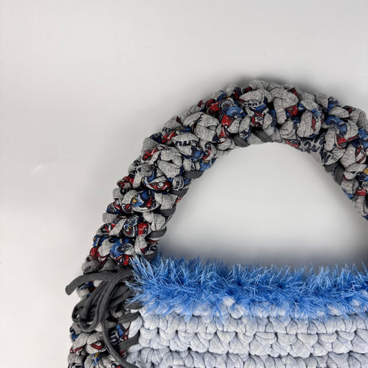 Our bags are handmade with 100% repurposed t-shirt yarn in our West London studio and are uniquely colourful and all one-of-a-kind 🪩 get yours today!
