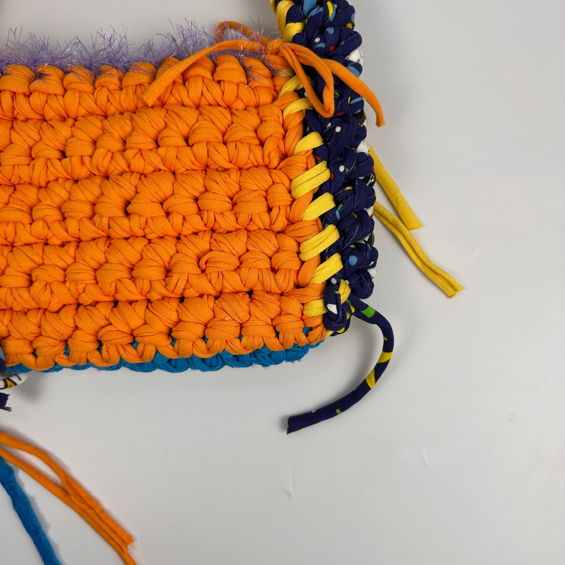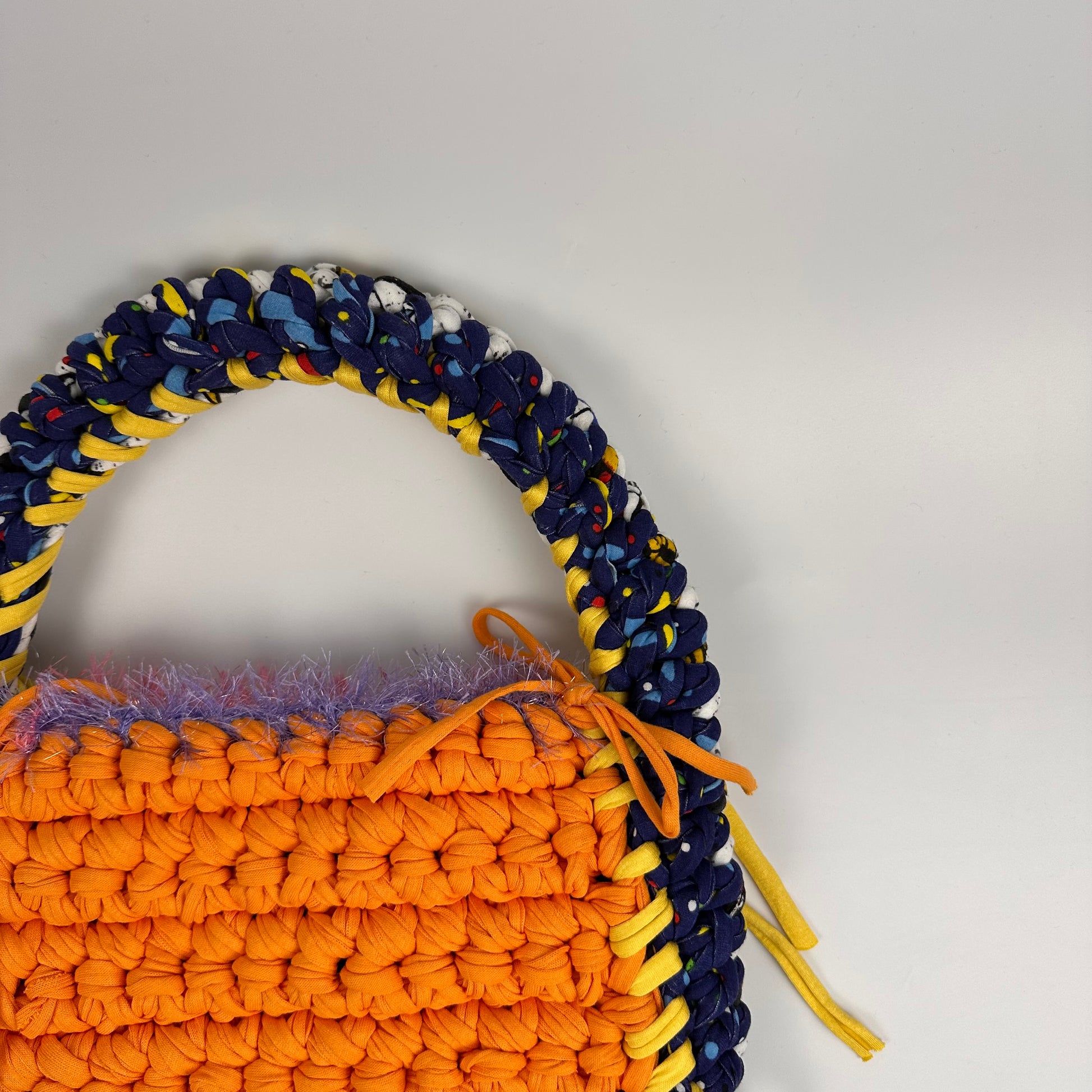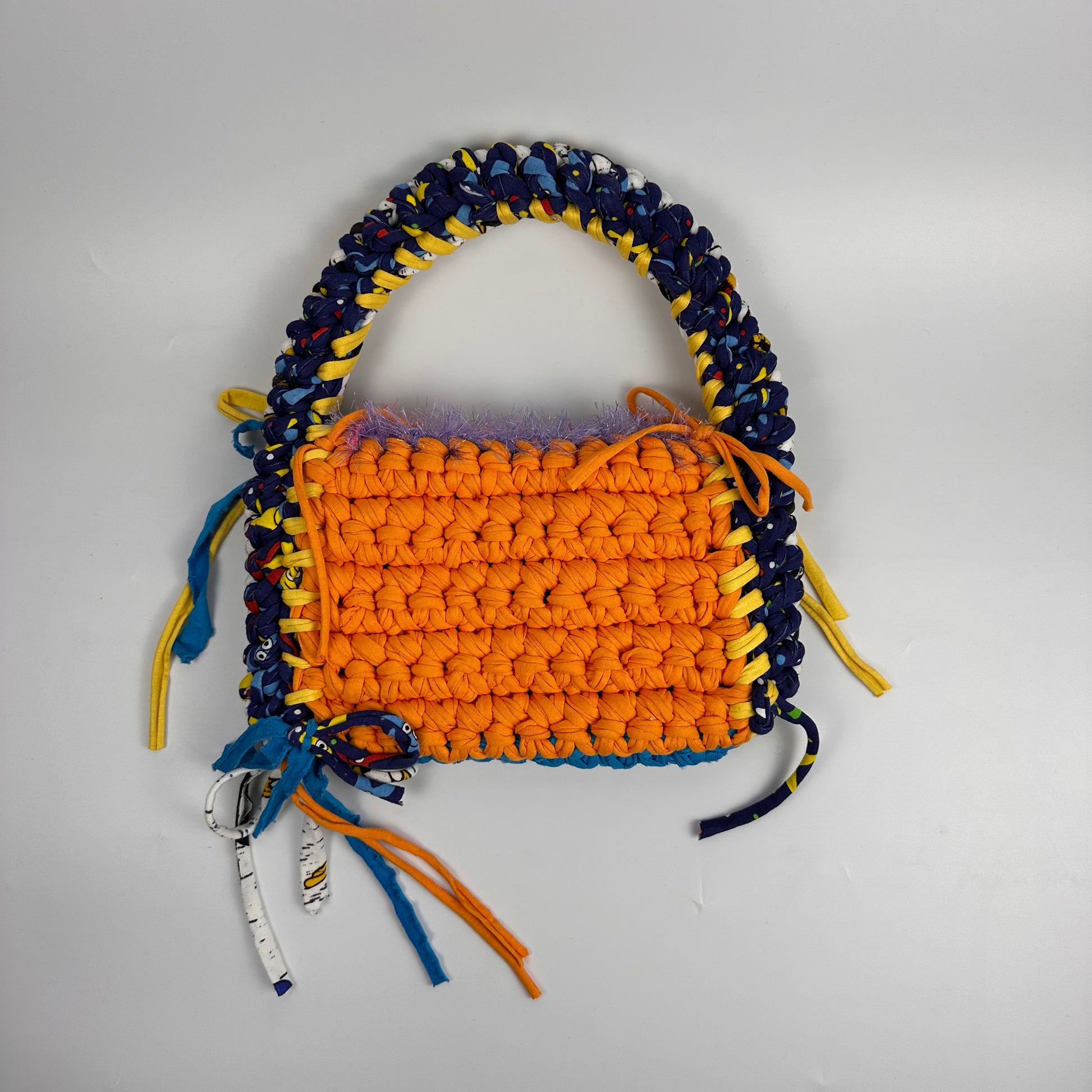 Delilah is the perfect shoulder bag for everyday or to take to special events. She will hold all of your essentials and looks just as cute hand held as sitting on your shoulder. This Delilah has two completely unique sides - one side blue/grey and the other side is orange/dark blue. She’s a very funky and bold bag.