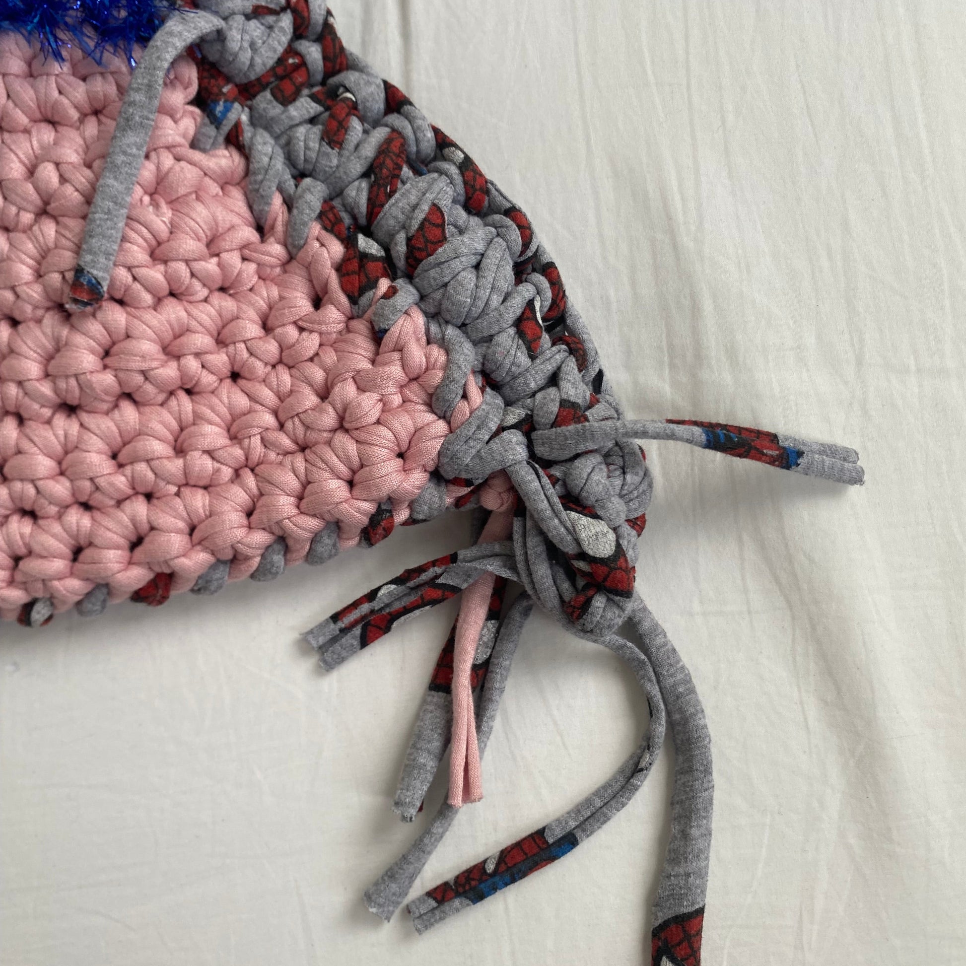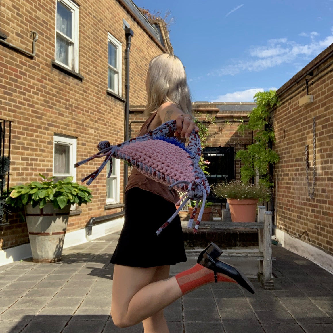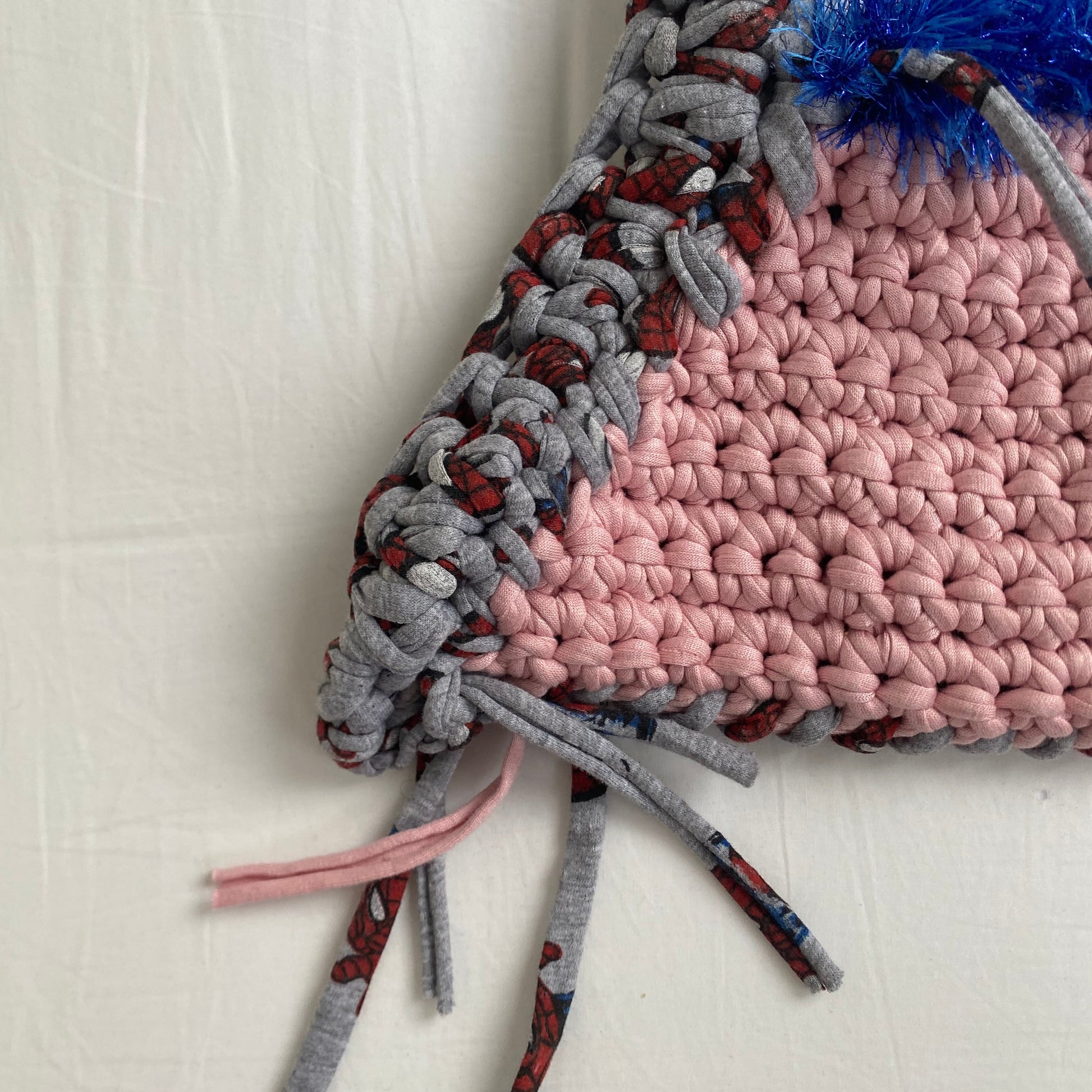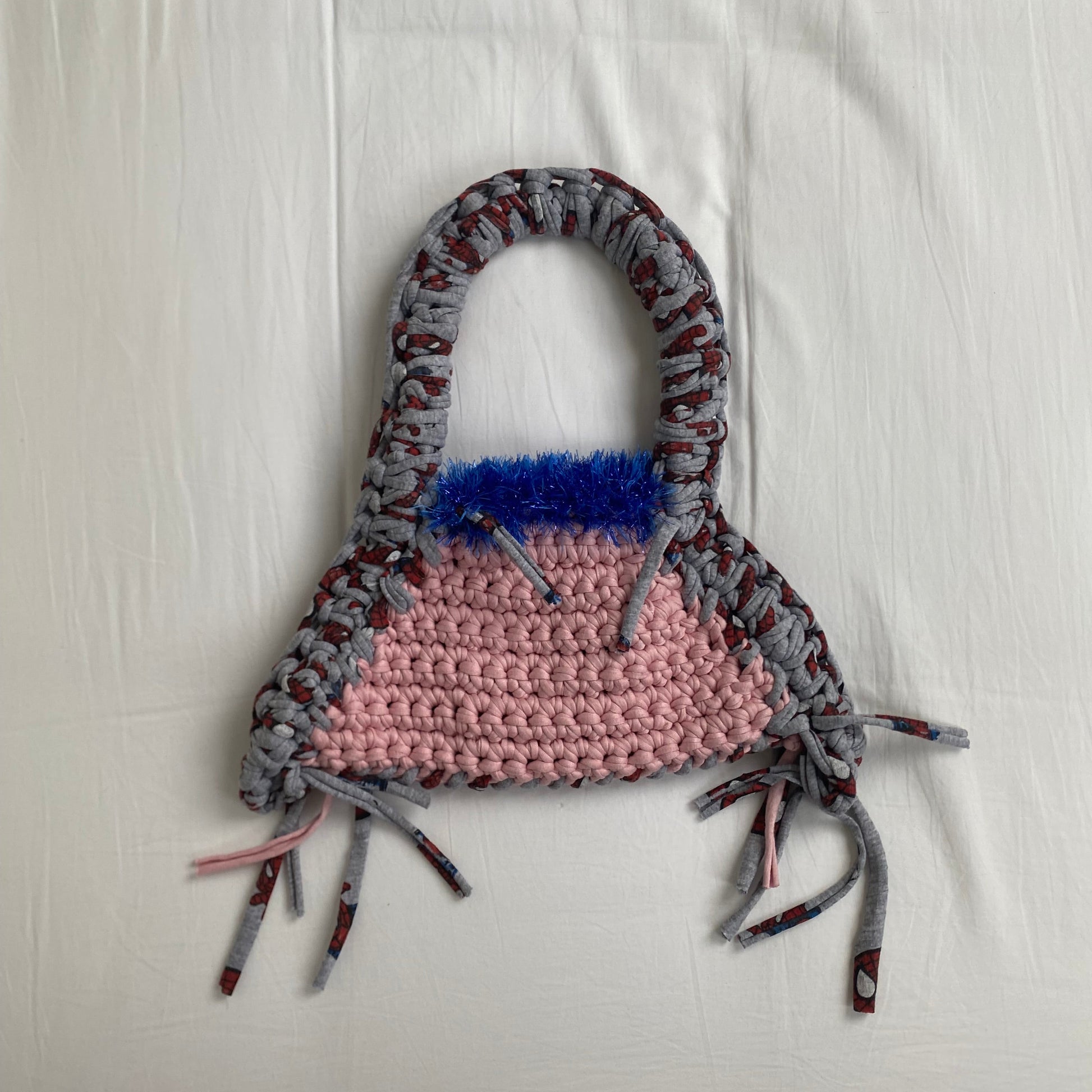 Handmade with recycled t-shirt yarn materials in London, UK. The materials used makes this bag sturdy and robust to minimise drag and keep shape. It comes with a single strand drawstring to close. This bag is more spacious than it appears on photos and is suitable for everyday, special events or simply coffee with a friend.